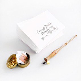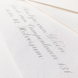 Daarnaast lever ik ook kalligrafiediensten op maat, zoals het kalligraferen van enveloppen, naamkaartjes, menukaarten of geloften.
